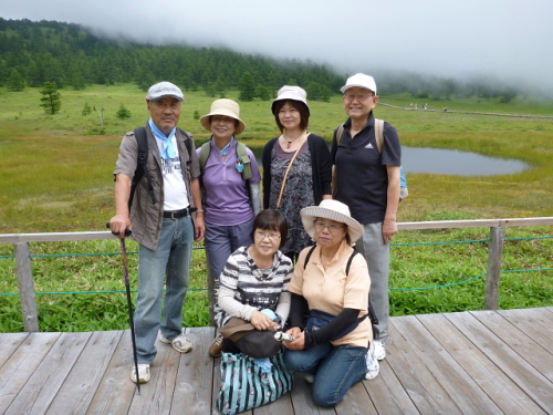 太極拳伊勢崎教室御一行さまご案内 太極拳伊勢崎教室御一行さま「見晴らし岳・池ノ平 山野草ツアー」のガイドに行ってきましたので報告します。 コースは、コマクサ峠〜雷の丘~~雲上の丘〜ピグミーの森~見晴岳〜池ノ平〜コマクサ峠、ツアー時間2時間30分のご案内駐車場~雷の丘~雲上の丘〜見晴岳~ピグミーの森~池ノ平駐車 参加者75名を3班に分け、私の受け持ちは月曜日コース22名、13名を超えるガイドは今までしたことが無かったので気合を入れて出発です。 夏の花から秋の花への移行のシーズンということもあり沢山の花を見ることができました。 ハクサンフウロ(白山風露) マルバダケブキ(丸葉岳蕗)、ヤナギラン(柳蘭) イブキジャコウソウ(伊吹麝香草) ワレモコウ(吾亦紅) マツムシソウ(松虫草)、ヤマハハコ(山母子)、ウスユキソウ(薄雪草) ヨツバヒヨドリ(四葉鵯)、ハクサンオミナエシ(白山女郎花 別名:コキンレイカ) アキノキリンソウ(秋の麒麟草)、シオガマギク(塩竈菊)、ウメバチソウ(梅鉢草)、エゾスズラン(蝦夷鈴蘭)をご紹介しました。 秋も近づき沢山の蝶が見られ クジャクチョウ(孔雀蝶)、ベニヒカゲ(紅日陰)、アサギマダラ(浅葱斑)などの乱舞する姿を見ることができました。 果実は、コケモモ(苔桃)、マイズルソウ(舞鶴草)、クロウスゴ(黒臼子).、クロマメノキ(黒豆の木 別名:浅間ぶどう)をご覧いただきました。 曇り空のため周辺の山は見ることができず山座同定はできませんでしたが、雲上の岡の山座同定盤で八ヶ岳や北アルプスなどを雲の中に思い描き。 参加された太極拳伊勢崎教室の皆さんと短い時間の自然観察登山でしたが楽しい夏山の一日を過ごすことができました。 -----------------------------------------------------------------------尾瀬の入り口戸倉温泉 「マルイ旅館」アットホームな雰囲気がお気に入り、尾瀬トレッキングの疲れも大浴場で癒せます。旅館専用の体育館もあり夏合宿にも最適ですよ。自然に触れ、自然を学ぶ、嬬恋軽井沢自然倶楽部みんなの尾瀬を みんなで守り みんなで楽しむ身近な自然の中で生きものを見つけ、その体験を通して生命の大切さに気づき、豊かな感性を育む・・・私たち「赤城姫を愛する集まり」は、この貴重なヒメギフチョウがいつまでも赤城山に舞い続けられる事を願う者の集まりですこのブログのホームに戻る