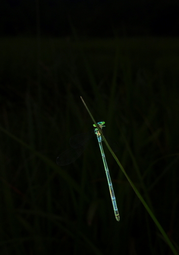夜のトンボの生態観察 尾瀬ヶ原には昼間、沢山のトンボ達を見掛けますが 夜はいったいどうしているのでしょうか? 湿原で夜や早朝に行動することが多い私ですが 羽化中や、羽化したての羽を乾かしているもの以外、成虫のトンボ達を見掛けることは殆どありません。 夕焼けを待つ一時と、日没後の一時にトンボ探しをしてみました。 生まれただろう池塘から離れた所で ヨシなどの葉先で眠りに着こうとしているルリイトイトトンボを見つけました。 彼らは一定の範囲に、一定の間隔を開けて集まっているようです。 近くで撮影しても殆ど逃げることがありません。 日没の前後に湿原の上、ユスリカのような小さな昆虫を食べに来た沢山のイワツバメを見ますがこの頃行動するのは、ルリイトイトトンボには命取りなのでしょう。 カエルや他の肉食昆虫が接近したときに逃げ出すことも、動きに反応する捕食者に対して危険なことなのでしょう。 広い湿原の中、木道の上で発見できたことは、ラッキーだったのかもしれません。 他のトンボの生態を含め調査してみたいものですが ん〜、なかなか時間がないな・・・。 ----------------------------------------------------------------------尾瀬の入り口戸倉温泉 「マルイ旅館」アットホームな雰囲気がお気に入り、尾瀬トレッキングの疲れも大浴場で癒せます。旅館専用の体育館もあり夏合宿にも最適ですよ。自然に触れ、自然を学ぶ、嬬恋軽井沢自然倶楽部みんなの尾瀬を みんなで守り みんなで楽しむ身近な自然の中で生きものを見つけ、その体験を通して生命の大切さに気づき、豊かな感性を育む・・・私たち「赤城姫を愛する集まり」は、この貴重なヒメギフチョウがいつまでも赤城山に舞い続けられる事を願う者の集まりですこのブログのホームに戻る