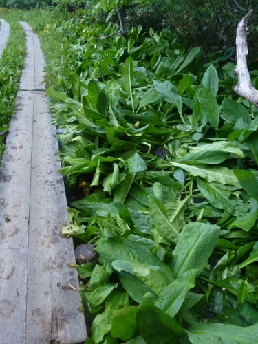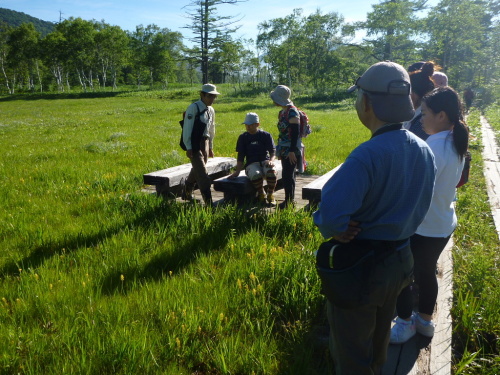 ボランティア活動が減っているので少しの時間だけでも 最近、週末ガイドが多くて、尾瀬ボランティアの活動がご無沙汰 尾瀬フィールド講座の日、朝一番のバスに乗って 山の鼻で幕営(キャンプ)の準備の後、7:15からのビジターセンターの朝の観察会に参加 ボランティアのネームプレートも、シャツも、ゴミ挟みも仕舞って一番後ろで一般参加者として黙ってついて行く 湿原の情報収集とともに、遅れた参加者の対応などインタープリターへの協力もする 人のインタープリテーションを聞くのは、自分が行う時の大きな参考になる ビジターセンターの職員には少々煙たい存在かもしれないが(笑) 朝の観察会が終わってから 午前中だけ研究見本園の前広場で、お話ボランティア(ハイカーへの散策コースや見所の案内)、と環境ミニツアー(尾瀬の環境保全の話と自然観察会)を行なった。 混雑期を過ぎたこともあり、環境ミニツアーは、2回6名の案内を行なった。 ボランティア活動が減っているので少しの時間だけでも協力しなくては・・・。 山の花ビジターセンターや至仏山荘の前で環境ミニツアーの看板を掲げて”ボケー”としている人がいたら私かもしれないので是非参加してね。 みんなの尾瀬を みんなで守り みんなで楽しむ -----------------------------------------------------------------------尾瀬の入り口戸倉温泉 「マルイ旅館」アットホームな雰囲気がお気に入り、尾瀬トレッキングの疲れも大浴場で癒せます。旅館専用の体育館もあり夏合宿にも最適ですよ。自然に触れ、自然を学ぶ、嬬恋軽井沢自然倶楽部みんなの尾瀬を みんなで守り みんなで楽しむ身近な自然の中で生きものを見つけ、その体験を通して生命の大切さに気づき、豊かな感性を育む・・・私たち「赤城姫を愛する集まり」は、この貴重なヒメギフチョウがいつまでも赤城山に舞い続けられる事を願う者の集まりですこのブログのホームに戻る