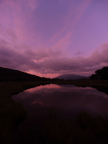 感じるだけの人気企画 私の企画する尾瀬ツアーには 夕方の「黄昏散歩」 と 早朝の「朝焼け散歩」を自由参加で行いますが 参加者の感想などを見ると「朝焼け散歩」が人気 真っ暗闇の中をヘッドランプで移動しますから 木道を歩いた動物の足跡ぐらいでインタープリテーションは殆どありません。 ポイントに着いて、日の出を待つだけ この日は、逆さ燧のポイントにカメラマンも居ないので木道に座って夜明けの一時を楽しみます。 「朝焼けは一瞬」と私はお話しますが 刻一刻と空の様子が変化して行きます 写真を撮る人 ただ夜明け時を静かに楽しむ人 人様々ですが 朝焼けには人にパワーを与えてくれる力が有るようです。 みんなの尾瀬を みんなで守り みんなで楽しむ -----------------------------------------------------------------------尾瀬の入り口戸倉温泉 「マルイ旅館」アットホームな雰囲気がお気に入り、尾瀬トレッキングの疲れも大浴場で癒せます。旅館専用の体育館もあり夏合宿にも最適ですよ。自然に触れ、自然を学ぶ、嬬恋軽井沢自然倶楽部みんなの尾瀬を みんなで守り みんなで楽しむ身近な自然の中で生きものを見つけ、その体験を通して生命の大切さに気づき、豊かな感性を育む・・・私たち「赤城姫を愛する集まり」は、この貴重なヒメギフチョウがいつまでも赤城山に舞い続けられる事を願う者の集まりですこのブログのホームに戻る