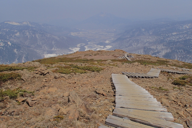 尾瀬ヶ原へ下る山頂直下から階段、高天原、階段が終わるまでは雪が無く