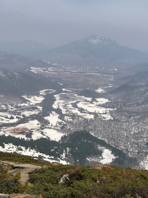山頂から見る尾瀬ヶ原は中田代、下田代の雪はほぼ融け