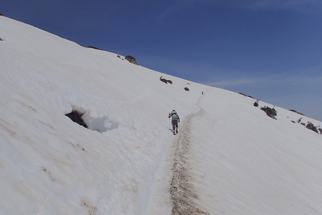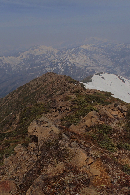 今年は早々とスノーブリッジが落ちていけない平が岳や新潟の山を眺めて