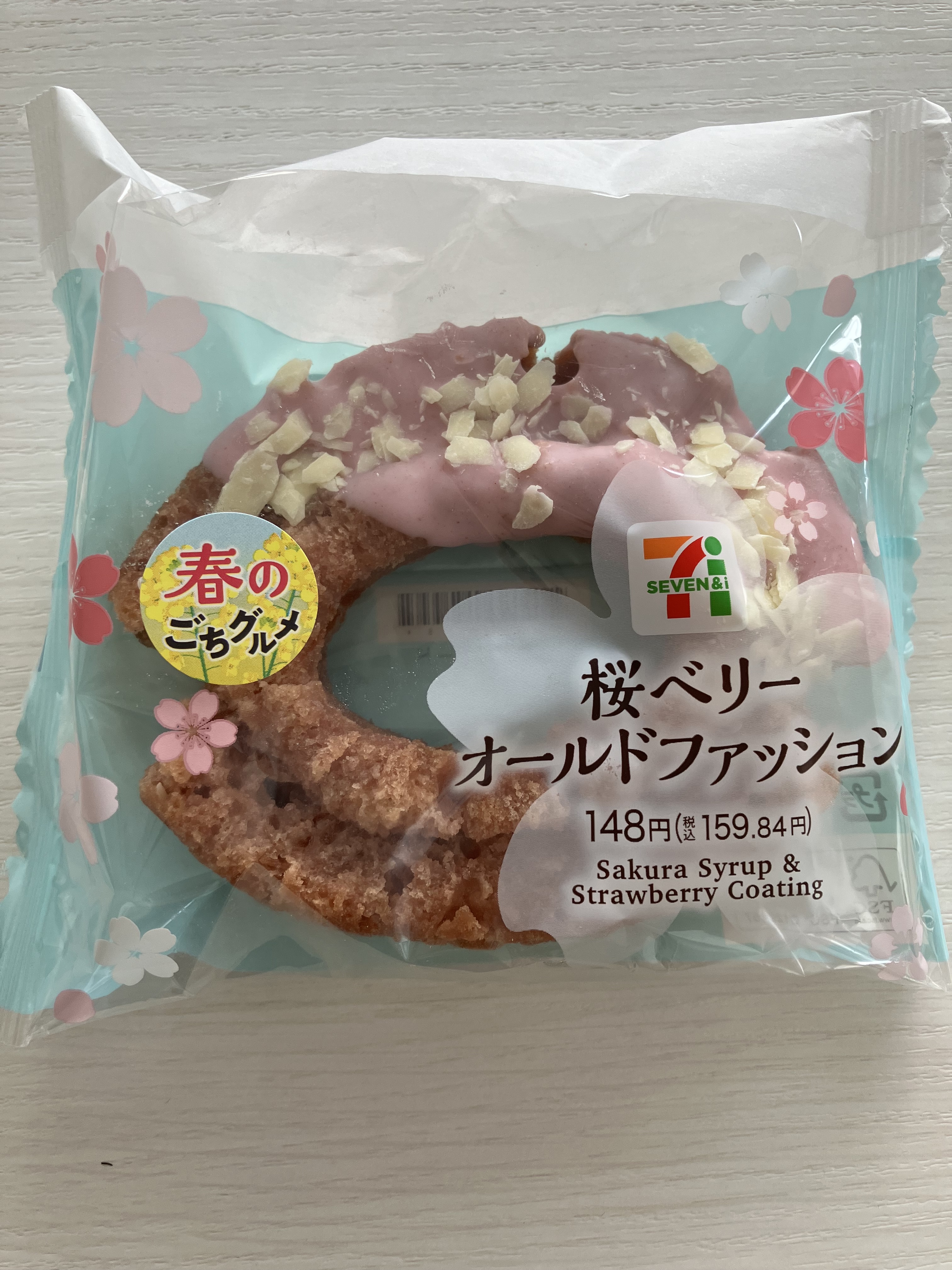 今日のスイーツ セブンイレブン桜ベリーオールドファッションドーナツ🌸今日は先週の夏を思わせるような暑さとはうってかわって真冬のような寒さでしたが昨年の酷暑を思うとまだ寒い方が マシかな…と😅