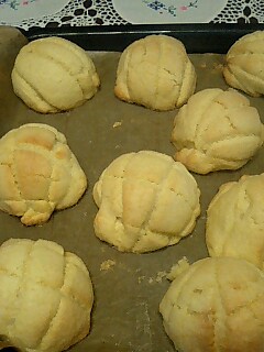 レモン酵母を使ってメロンパンを作ってみました。 この手の、パン屋さんでよく見かける定番の菓子パンは なかなか自家製酵母の本には、載ってませんね。 レシピが無いので、他のパンを参考にしながらの配合。 折角レモン酵母さん使用したから、レーズンを使わず 生地にレモンピールを混ぜ込みました。 生地量40gの若干小さめのメロンパンです。 粉は、ふかふかパンにしたかったので スーパーカメリアを使いました。 最終発酵に時間が掛かり、焼き上がりが夜になってしまった… 先日の使えないレモンピールを作った時の中味で レモンカードなるものを作り、余った生地に塗って 焼いてみました。 ベンチタイムが足りないのか、成形時伸びなくて 大変でした。 レモンカードはレモン汁、全卵、無塩バター、砂糖を 湯煎で10分混ぜるだけらしいです。 どれ位、日持ちするやら。現在冷凍庫は満杯状態で 冷蔵保存してますが、早々、これを使って何か焼かねば。 皆様から刺激を受け、冷蔵庫のスペースを考えず 現在、酒粕酵母、レーズン酵母、林檎酵母の液種作りを 始めちゃいました。 この本によると 自家製酵母で作るワンランク上のハード系パン 元種作りの容器はポリプロピレン製の保存容器とあり 場所を取る、瓶じゃなくても大丈夫そうな事が わかりました。これなら野菜室保管もできそう。