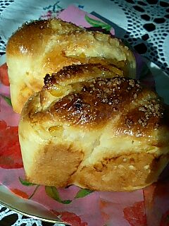 ホシノ丹沢酵母を使って、ちょっぴりカロリー高めの ブリオッシュを焼きました。 これは、昨年 初めて天然酵母のパン教室に 習いに行った時のメニューの一つです。 それまで、天然酵母のパンはハード系とばかり 思っていた私にとって、「こういうバタータップリのパンもあるんだ」 って感じの大きな衝撃でした。 講習では柚子ピール (回りにお砂糖がついているタイプでしたので さっと、お湯で洗いました)入りのリッチな生地250gで分割でしたが 同じ位の型が無かったのでミニ食パンケースに入れて焼きました。 焼いている時、部屋中 柚子の香りがして とても、幸せな気分になりました。 携帯で写している指に ご注目(苦笑) いい加減、デジカメ覚えないと恥ずかしいですね(-_-;) ホシノ酵母は丹沢酵母とフランスパン種も起こしたので 次はフランスパン種で挑戦してみたいです。