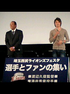年末年始は、多忙スケジュールで更新もコメントも 遅れがちで失礼しました。 一つくらい、お正月らしい話題を。 1月2日に所沢の西武百貨店の新春イベント『選手とファンの集い』に 行って来ました。 これは、前もって、応募して年末ギリギリに抽選で選ばれた人に 招待葉書が届く無料の催しです。 しかし、当たらない私の名前では今年で4回連続ハズレ。 お陰様で友人のご厚意で今年も行く事ができました。 最前列に座りたい方は福袋のお客さんと一緒に開店前から 長い間並びます。どこでも、座れれば良い私は開場1時間前から 並びました。 司会の中川充史郎さんのお話のように、渡辺監督&涌井投手のコンビは 優勝した2008年のコンビなので、良い結果になれば嬉しいです。 お土産は恒例、監督と選手のサイン入り色紙。 今年から新しくなった球団色紙です。