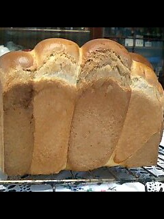 義母が次女の大学卒業祝いの食事をしたいとの事で、午前中お土産に持っていくパンを焼きました。毎度おなじみのコーヒーの二色パン メティユ・オ・ドゥ・クルールと、先日のイチゴシロップを使って三色パンを作ってみました。 白生地、緑は抹茶、ピンクはイチゴシロップ。 抹茶と、イチゴシロップの組み合わせが、どうなのか全く疑問でした。 粉はスーパーカメリア 白と緑は一緒に捏ね、分割した半量に抹茶を といだ物を加え、再度捏ね、 ピンクは別捏ね。こねているうちに色が薄くなってきたので、小さじ1杯ほど ママパンで買ったイチゴの着色パウダーを倍量のお湯で溶いたものを加えちゃいました 三つ編みしたものを メッシュ型に入れました。 焼き上がりを半分にカットしたもの 断面図です。 心配した抹茶とイチゴシロップの組み合わせ、問題なかったです。 イチゴも、ほんのり香る程度だし、抹茶も色付けのつもりで使っただけだから でしょうか。 今日もキング様のお力で元気に釜伸びしてくれました。【1.8斤ケース使用】 スーパーキングは凄い コーヒーの香りが強い割りにコーヒーの味を感じないと、次女の感想。