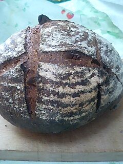 とうに賞味期限の過ぎてしまったチョコレートビール。 何か料理に使えないかと、冷蔵庫に眠っていたのを 取り出しカンパーニュに挑戦。 まず栓を抜いて驚いた。 チョコの香りがしない。 まあ、賞味期限がとうに過ぎているから仕方ないか。 それを、煮詰めて仕込み水にしたが、黒ビールの香りプンプン。 昨晩のうちにこねて一次発酵。 ところが、寝てから気が付いた。 事もあろうか生種を倍量入れてしまった 翌朝起きたら、普通に発酵してました。 本には、ジンジャーピールが入ってましたが、 あまり得意でないので、カシューナッツをちょこっと 入れて蒸気焼成。 焼きあがりも黒ビールの香りがプンプン。 そして、苦い。 以前、イーストでビールで捏ねたパンを 焼いた経験がありあますが、こんなに苦くなかった… 調べみたら、仕込み水にビールの半量弱の水を 使ってあった。 もしも、期限内のチョコレートの香りプンプンのチョコビールを 使ったら、チョコレートノ香りがする焼き上がりだったのかなぁ(?_?) 生種作りも自信が付いてので、新たな生種を作ってます。 そして、レモン酵母さんですが そろそろ酵母作りに入ってみようかな。