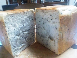 何となく年末で気ぜわしい中酒粕酵母の元種を使って角型食パンとチーズ・角切りロースハム入りのカンパーニュを焼きました。3つに分割し、一つは黒胡麻を加え、真ん中に入れ焼きました。角食はイーストと同じように8分目の発酵で焼きに入ったのですが、もう少し待った方が良かったみたいですね。自家製酵母の場合は8.5~9分目位で焼いた方がいいなかな…?オークションで落札したロースハムブロックを角切りにしてチーズを一緒に入れて焼いてみました。おなじみ木の葉型クープです。元種法で焼きましたが、チーズの香りはしますね。酒粕酵母であんぱんを焼くと、やはりチーズの香りがするのか知りたいです。