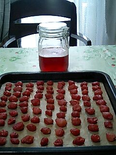 3年位前までは、よく見かけたセミドライストロベリーがここ数年は見つからず、ドライストロベリーで代用していたものの硬かったり、色が凄すぎたりで、今年は自分で作って見ました。クックパッドを参考に、イチゴにグラニュー糖を掛け一晩置きます。レモン汁を加えあくを丁寧に除きながら10分程弱火で煮ます。実はオーブン110度で60分程焼き、翌日と翌々日に天日干し。半生が欲しいので天日干しは二日で止めておきました。 この赤いシロップを使ったら、待望の赤かピンクのパンができるかしら。 今日は、実の方を使って甘~いパンを作りました。 半生状態のセミドライストロベリーとホワイトチョコチップを巻き込み 型に入れて焼きました。 断面図 娘たちが夫々お花見だったので、カットして持って行きました。 個人的には酒量が増えた影響か、 チョコチップが入っているパンを好まなくなりました。 折角、高いホワイトチョコにしたのに残念。 さあ、今から明日で無料配信が終わるらしいYAHOO動画 でライオンズを 応援するぞ 何ていったって、先発ダルビシュ許銘傑 なかなか見れない組み合わせだものね。 頑張れ~許銘傑