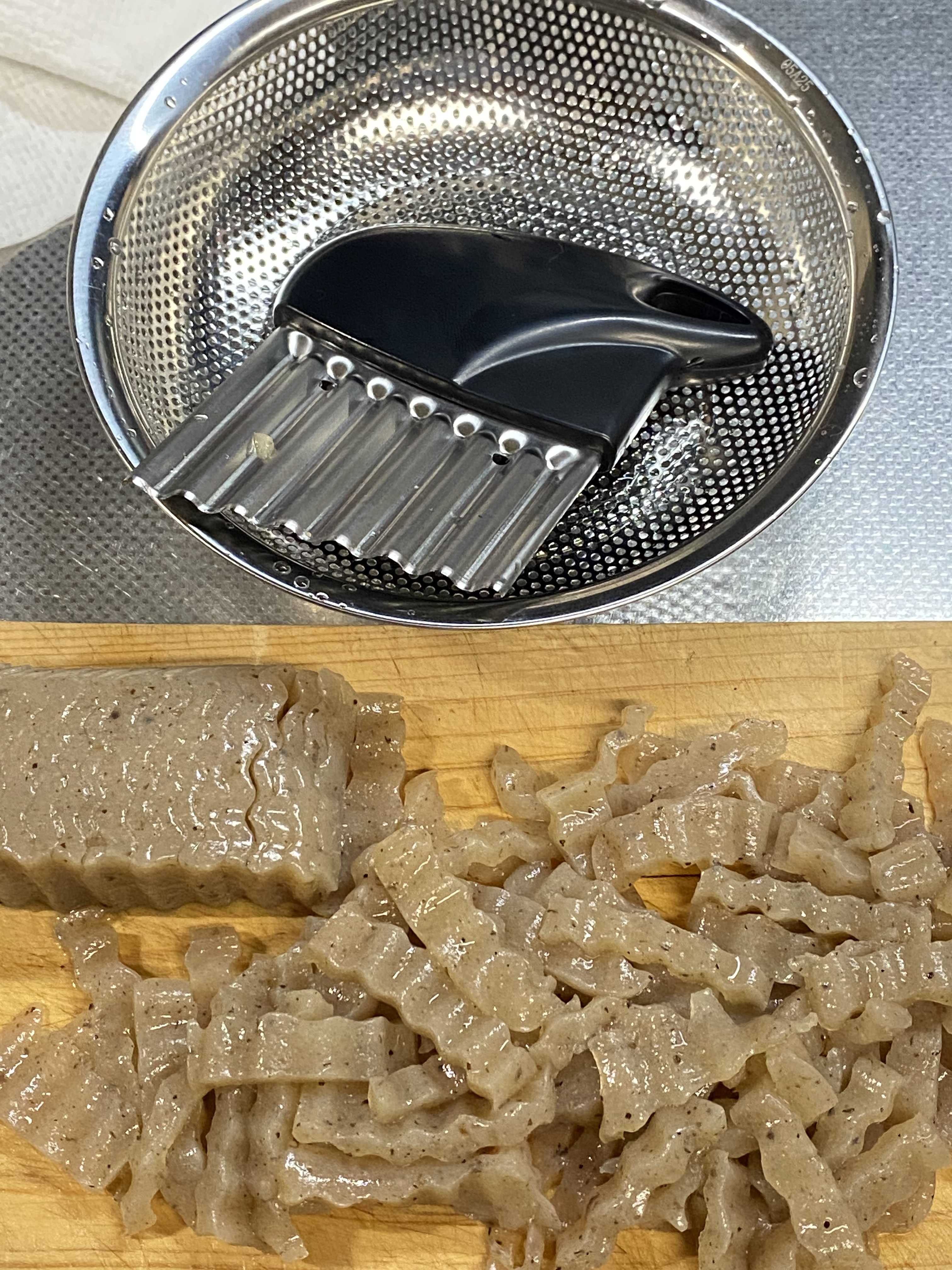 調理器具のマイブーム、1本目の記事です(^^♪新潟三条燕の下村工業さん「キッチンバー なみなみカッター 」KIB-634以前は100均商品があったようですが、現状ではseriaもdaisoもcando、watts取り扱い無しです。随分と探して、結果的にアマゾで買いました味わい工房 なみなみカッターこれまで試してみたのは、ギョニソ(魚肉ソーセージ)、ニンジンそれからこのコンニャク! ポテトはまた今度、普通に一番イメージしやすいですよね。さらに調べたら黄色いハンドルもあるんですね、孔はなし。FV-616んーっ!なみなみカッターコンニャクいいかも表面の面積を稼げるので味が入りやすいとか、見た目が糸コンみたいだけど、アレ??みたいな意外性もある?何より意外だったのはナミナミが噛んでくれるので、薄刃の菜切りよりも切りやすくてコンニャクがグニャっと逃げなくて安全、それだけでも有意義今朝の土鍋調理でアップした完熟ゴーヤーとコンニャクのラタトゥイユ?これは初めてギョニソとニンジンをカットしたときの画像です、煮込み料理に使いました。さて、明日はなににしようかなーー😘