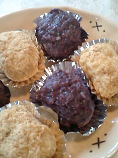 これまで肩こりや腰痛にはホトンド無縁だったのに・・・先日、パート先で重い荷物を持ったとたん腰に激痛~以来、どうも腰が痛くてたまりませんもしかしたら、これが噂のギックリ腰!??と思ったら、以前、ギックリ腰経験者のダンナいわく「そんなのはただの腰痛だよ!ホントのギックリ腰だと痛くて起き上がれないんだから」ですって。ふむむむ~o(・”・)o職場には腰痛持ちの人が多くて、毎週マッサージや鍼に通ってる人もいます。これまで他人事と思ってきたけど、いよいよ私も仲間入り間近なのかも?気をつけなくちゃ~と、腰の痛みもなんのその、オハギを作りましたアンコをもち米で包んで黄な粉をまぶしたほうがサッパリと食べれるので、ついつい、そちらのほうばかりに手が伸びます(^m^)