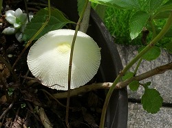 今日の東京は、ひさびさに青空~ソレっとばかりに洗濯機を数回回し、布団を干して、掃除機かけてと、朝からテンテコマイでした今週中頃から、また天気崩れそうな気配だから、いまのうちに!と、芝刈りも決行~このところ雨を言い訳に家でゴロゴロしてたから、さすがにちょっとバテバテですわ今週は延び延びになってたお出掛けプランが2つほど控えてるのに、体力大丈夫かしら~??ww芝刈りのあいまに、軒下に置いてた鉢を見てみると・・・・ 白いキノコがニョキニョキ~ww連日雨ばかりだったせいでしょうね~^^;朝顔の花は長雨にもめげずに、まだポチポチと咲いてますでも、種が大変なことになってました 朝顔の種取りのタイミングは、種の入った袋が乾燥してきて茶色くなった時期ですよね?でも、茶色の時期は毎日雨だったので「雨が上がったら取ろう」と一日延ばしにしていたら、なんと、種から根が出てきてるじゃないですかw(゚ロ゚)w根が出てない種も濡れ濡れで黒ずんでるものばかりだし(涙)これって絶望的ですかね~まだ緑色の種も残ってるので、こちらに期待ですわ先日、日記アップした女郎蜘蛛夫婦も健在で子作り準備(笑)をしている模様だし、放置状態の鉢にはバッタ(?)みたいな虫も発見数年前から庭に住みついてる(?)かなへびも、元気にチョロチョロしてましたww我が庭では薬剤をほとんど使ってないせいか、虫や小動物をよく見かけます。いつぞやか蟻が大発生したので、蟻駆除剤は設置してますけどね^^;虫は好きじゃないけど・・・庭散歩を日課としてる飼い猫がいる関係上、安心安全な庭を目指さねば~そうそう!クレマチスもひょっこり咲いてましたクレマチスはこれから来春の花芽の準備期間ですよね?このまま咲かせていいものやら迷ったんですが・・・・とりあえず一輪だけなので