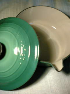 昨日の食喜屋さんのセール、凄かったね見事ゲットできた人、おめでとう私と同じように出遅れた人、残念何しろあっという間の出来事で残念というより売り切れる速さに感動した今日の画像はマルミット(22cm)のおしりです。見ての通り、と~~ってもキュートね、ね、可愛くない全体像も可愛いけど、後姿もなかなかでしょ。360度回転させて眺めてうっとり~うちではすっかり炊飯用となっていて今気付いたけど炊飯以外に使ったことないや。3~4合炊くにはぴったりサイズです。だいたいロンドの20cmと容量が同じくらいだと思います。ん~でもチビふたりが思春期に入った頃を想像するとやっぱり大きいサイズが欲しいな。