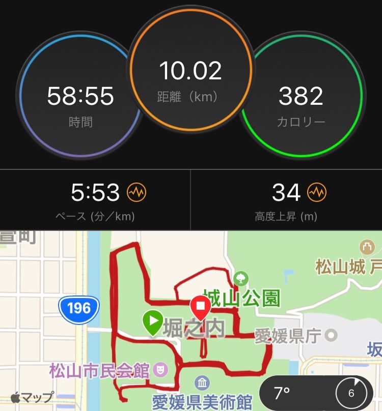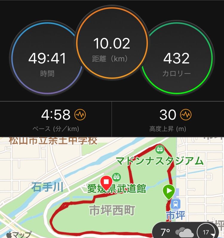 今日の体重47kg 体脂肪率15.7% 今日は午後から仕事。 なので 朝のうちに走ってみたいなと思い 10k 愛媛マラソンのスタートまわりを ぐるぐる あっという間の1時間 走れるっていいな♪ 1週間まるころランオフして アキレス腱の具合は… 気にならないほど 随分良くなってました。 95%完治か。 走り終えて 温泉で 冷やして温めて、の交代浴 いい感じ 悩むなぁ 明日のラン ゆっくり峠走しようか はたまた 緩めのビルドアップ走か 無理しないよう ボチボチ走ろ