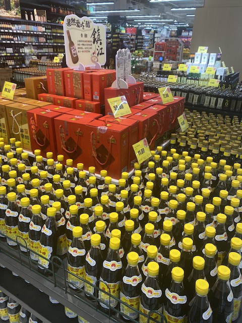 鎮江の名物を中国人に聞くと「黒酢」と良く返答がきます。鎮江のスーパーでも地元の黒酢の売り場は気合い入っていました。