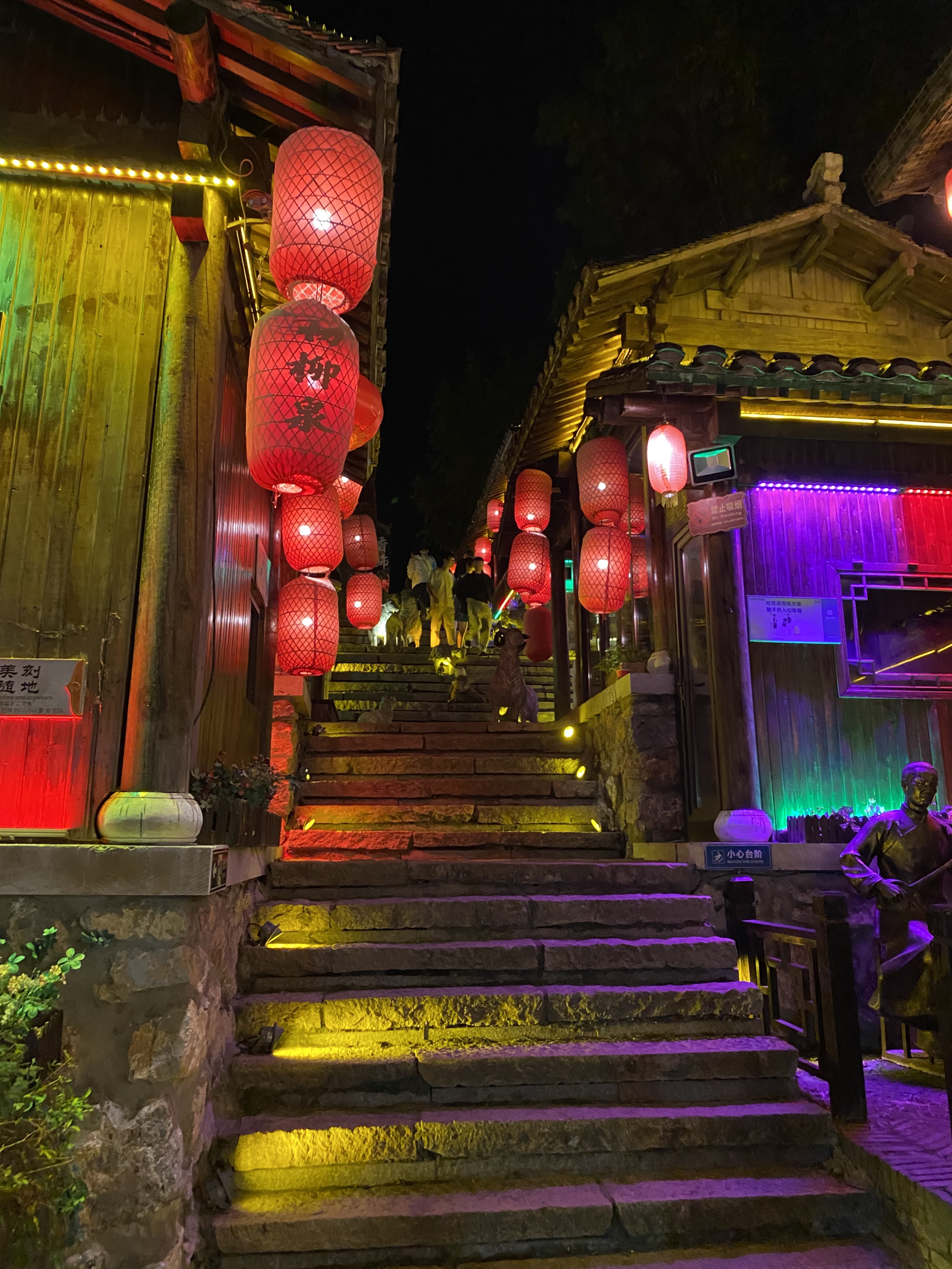 揚州から橋を渡ると鎮江になります。長江の大きさを実感できます。その後は鎮江の古い街並みを夜散策です。日中と異なり観光客も少なめで静かです。