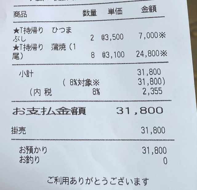 うな匠で31800円分の鰻を購入です。全て株主優待券払いです。