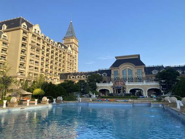 青島にあるヒルトンホテルに宿泊です。リゾート感いっぱいのホテルでプールも大きくて楽しめました。遠くに見えるのは青島ビール祭りの会場です。