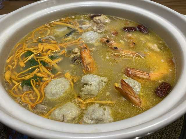 大連の海鮮蒸し料理が美味しいとのことで食べてみました。蒸すことで海鮮の素材の味がしっかり味わえて美味しいです。締めは海鮮のエキスが詰まったお粥です。