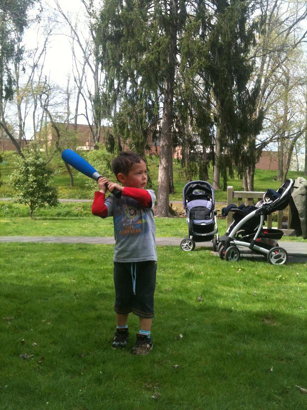 おちびさん、最近は野球選手になりたいそう。で、ピッチャーになりたいんだって。3歳にして、既に野球バカのニコに洗脳されている。何せ1歳の誕生日ケーキからテーマは野球だったから。。(良かったら写真見てくださいまし)http://plaza.rakuten.co.jp/caocaononbiri/diary/200902250000/既に、こんな感じで野球の練習してる。ピッチャーになりたいはずなんだけど、何故かバッティングも練習させられているおちび。これが、結構バットにボールが当たるようになってきてるから、驚き。やっぱり、3歳くらいの子供はなんでも吸収するのが早いわ。私なら、何ヶ月かかっても、バットにボール当たらんやろうなー。そして、ピッチャーになりたいおちびさん。それを言うだけあって、投げる方は、普段からおもちゃ投げまくってる(怒られてるけど)練習の成果あり、すごい遠くまで早い球が、思ったところに投げられる。ニコは、決して野球を「すること」が好きなのではなく、「見るだけ」なんだけど、おちびにはリトルリーグで活躍させるデーと張り切っている。(「いっやー、にこの息子やからなー、途中で辞めるんちゃう?見るだけが良いって言い出すんちゃう?」と心で思っていても、言えませんが。)ちょっと前までは、ヘリコプターのパイロットになりたいって言ってたのになー。日本帰国途中の空港でパイロットの人から飛行機のバッチを貰ったから。嬉しかったのか、ずっと洋服に付けてた。何故か飛行機ではなくヘリコプターなんやけど。私は、パイロットの方がいいなーと思ってたけど。今は、ニコの洗脳が効いている様子。また、すぐに何かに刺激されて、何か他のものになりたい~!って思うんだろうね。しかし、まだ3歳だから将来の選択肢がいっぱいあって良いナーと私は思う。私なんて、もう30台後半。これからの人生も自分次第なんだろうけど、働くことに少々疲れ気味な私。(3歳の息子と30台の自分と一緒にするなって?!)「将来、こんなことがしたいな~。」なんて最近思えない自分がちょっと寂しい。考えているのは、「将来困らないために、何をしよう」だもんな。ま、こんな将来を夢見ている息子のためにもCollege Fundに十分お金を入れておいてやらないとなー。色んなこと経験させてやらないとなー。あ~~。なーんか暗いね~。ま、気をとりなおして。動物を触れるようになったおちびさん。イースターバニーを素手で触ってる。動物嫌いな私には、決して無理。ちょっと前までは、おちびも動物を怖がって触れなかったのに、成長ですな。そろそろ動物園にも連れて行こうかなー。ニコも私も、実は動物が苦手。なので、おちびを動物園に連れて行ったこと、これまでたったの1回。しかも、近所の超小さな動物園。二人で避けてきたんやけど、やっぱり子供は動物に興味があるようで、覚悟を決めて連れて行こうか。そして、やっぱりおちびも日本人。写真のときは、当然ピースでしょ。ということで、おちびさん、3歳になっても、まだまだアメリカ人の標準を上回る勢いで成長中です。