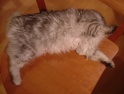 ふわふわのしっぽ。。。お風呂に入ると細くなってしまうけど、乾くとふわふわ。。。バジルのしっぽはすごくゴージャス!柔らかいというより、ふわふわ。。。触ると気持ちいいんだぁ。。。。 身体の太さと同じ太さのバジルのしっぽ。。あらいぐまのしっぽみたい(^m^)シナモンのしっぽはとてもしなやか。。。。これがまた触ると気持ちいい。。。ん?最近、しっぽフェチになったかな。。 モンちゃん。。。いつも見てもきれいな模様だなぁ。。最後のしっぽ。。。これはだぁ~れだ?下半身、丸刈りにされてる。。。実はココア。。。毛玉がすごいので下半身としっぽの付け根を切った。。笑える。。。ごめんね、笑うためにきったんじゃあないよ。ココアのためだよ。。。 夏バージョンのココア。。。?