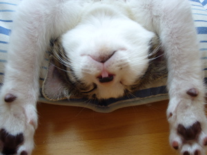こんな記事をみつけたそういえば中越沖地震のとき、りんご家の方は震度4そのとき猫庭で遊んでいた我が家のにゃんずは目を真ん丸く見開き、『何事?』って感じで急いで家の中に入ってきた。なんだかとってもソワソワしていたっけ。。。その晩の地震(確か北海道のほう)は震度2か3だったと思うけれどりんごは少しのゆれでも飛び起きるけれどまわりにいたにゃんずはいつものようにへそ天で寝ていたっけ。。。(ちなみにだんなは2階の寝室で熟睡中…何があっても起きない人です。)きっと危険ではない『ゆれ』って判断したのかしら?でもいつも思うけれど、被災地には人間のほかに動物たちもかなりの被害にあう。。。みんなきちんと家族のもとに帰れればいいな。。。 りんごのぎっくり腰ですが全然よくならないのやっぱり安静にしていないといけないのかなぁ~。なんだか坐骨神経痛もでているみたいだし頚椎ヘルニアもどきもでているみたい。。。。ふぅ。。。なんだかボロボロこんなときってどこにいけばいいのかなぁ~?ちなみに今回は整形外科ではなく整体の先生のところに行ったの。。。お返事できなくてごめんね。。。読み逃げでごめんね。。。