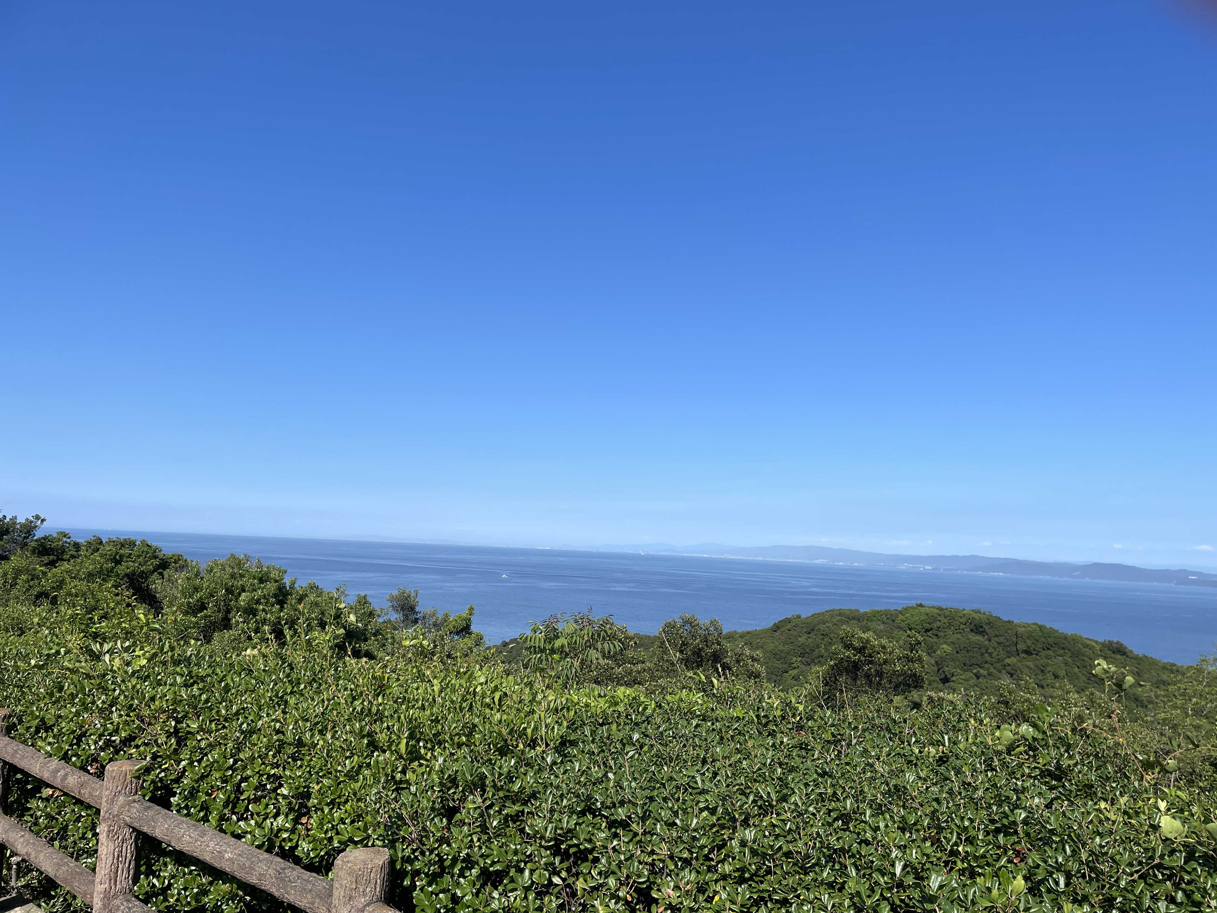 洲本市の洲本城中腹の駐車場から上がり展望台からの眺め大阪か和歌山かその辺りが見える様ですどこか分からないけれど木陰もあって心地良いお散歩道展望台も風が爽やかで夏らしい心地良い暑さです。