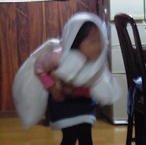 ☆娘は小学5年だが、ぎりぎり紙一重で信じてるサンタ。☆クラスの友達で信じている派は娘を入れて僅か2名となってしまった。 ☆サンタはお母さん派が大多数を占めており・・・その発言内容は某国のミサイルのように、空想のサンタを迎撃しているかのようだ・・・ 「お母さんが枕元に置いたのを目撃した。」「お母さんが私がサンタをやっていたと告白した。」「未だ信じているの?お子様ねぇ♪」 今、たった2人で聖域を死守しているらしい。 まぁ、頑張ってくれたまえ! ひょっとして気がついてるのかも?と思ってみる。優しいところあるから、親の芝居に合わせてるとか・・・? いや、どうだろう?おもいっきりズレたところあるから信じてる可能性も高いか? 先日なんぞは・・・赤十字の献血を運ぶ緊急車両を目撃「あれ何?」と娘のくえすちょん・・・手術時に「A型の血液が足りない!」とかいって緊急に運んでるんや!と親父アンサーその驚愕の返答は・・・ 「もったいないから掃除機で吸い取ってリサイクルしたらえぇんとちゃうん!?」 って・・・・「えぇーことあるかー!」 「そうか!じゃぁAB型用の掃除機とA型のんとか別って事で♪」 思わず事故りそうになったワ!→事故ったら親父は几帳面なA型の掃除機、娘はおおざっぱなO型の掃除機でお願いします。 やっぱり、サンタ信じてるのかなー? 皆様はどう思われます? 案外、裏をかいて「娘がサンタ」って方に私は1票投じます。 4年前の娘の写真・・・そうね、かついでいるのは笑い袋です。