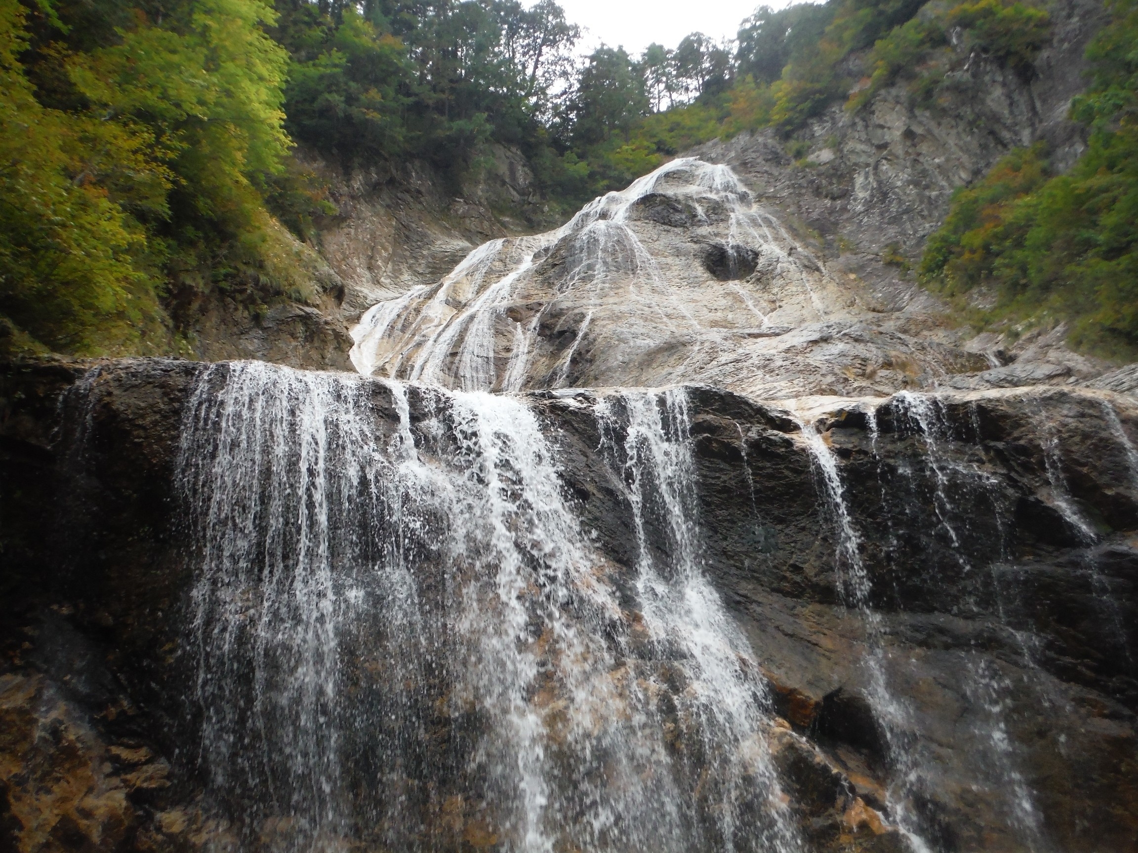 老女が白髪を振り乱したような幾条もの流れを見せ、圧巻。蛇谷園地駐車場から20分ほど
