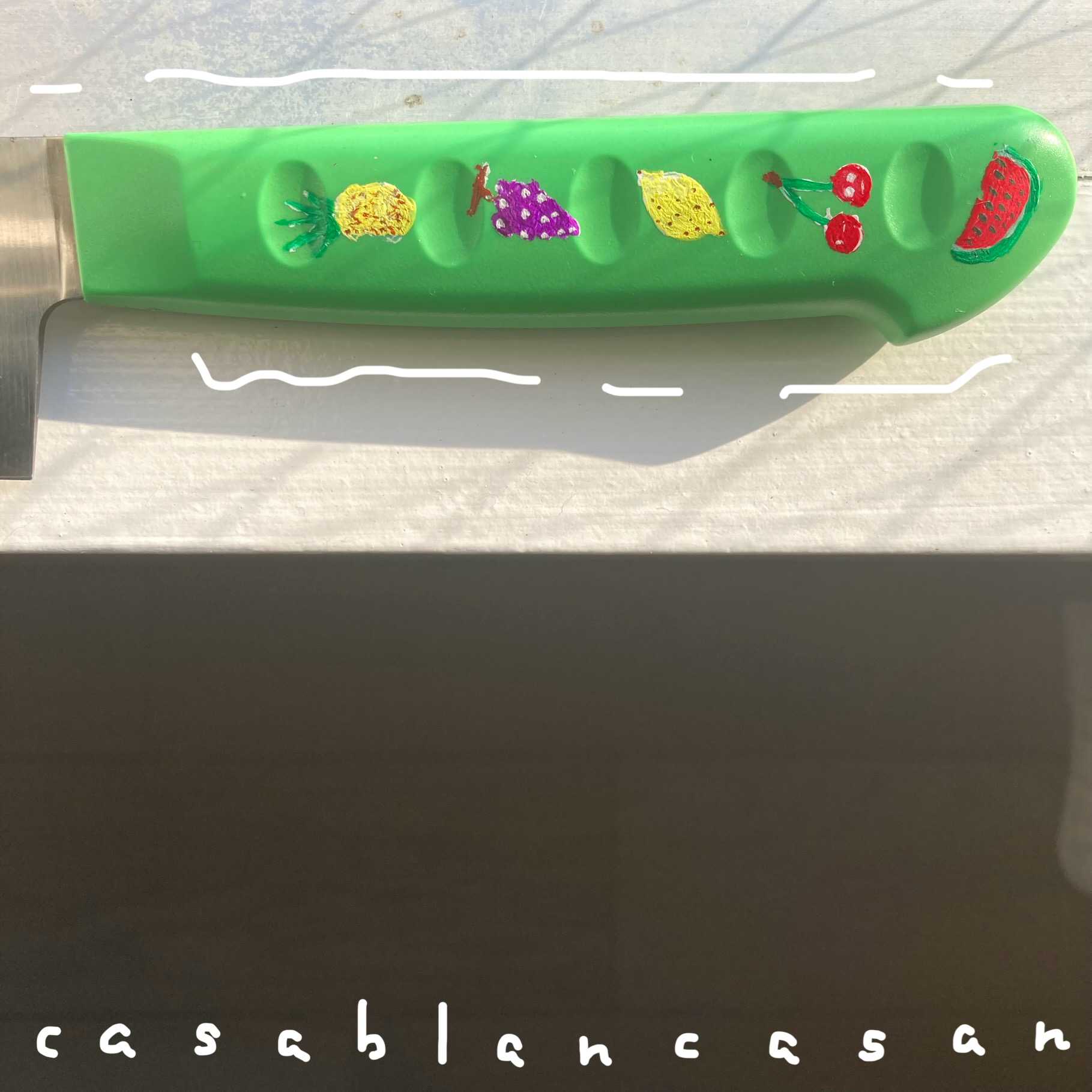 カサブランカさん の 生活 ーーーーーーーーーーーーーーーーーーーーーーーーーーーーーーーーーーーーーーーーーーーーー この度は、 ご観覧 いただき 誠 に ありがとうございます。 こちら の ブログ では、 「生活」 に 関する 「アイテム」 や 「出来事」 について、 載せて 参ります。 ご一読 いただけたら 幸いです。 何卒 よろしく お願い 申し上げます。 ーーーーーーーーーーーーーーーーーーーーーーーーーーーーーーーーーーーーーーーーーーーーー今回は、 「包丁もデコレーション。雑貨を愛おしむ。」 を ご紹介 して 参ります。グリーン の 取手 の 包丁。夫 が 独身時代 に 使っていた 包丁です。アクリルガッシュ で 絵 を 描いて 自分 なり に 可愛く デコレーションして 使用しています。土台 の 取手部分 は ツルツル しているので、 絵の具 が 密着 しにくい です。なので、 絵 が 剥げて きていていますが、 愛着 は 増しています。次、この 包丁 に 絵 を 描き直す とき は、 ヤスリ で 絵 を 描く 部分 を 削って から 絵 を 描いて 絵 が 消えないように 工夫 してみたい と 思います♪今回は 以上 の ご紹介 です。最後 まで お読みくださり、 ありがとうございました。最後に。⭐︎*+暑い 夏 いかが お過ごし でしょうか。笑って 深呼吸 して 栄養 を 補給 して 少しでも 力 を 蓄えて 一緒 に 暑い 夏 を 乗り越えましょうね。目の前 で 嫌なこと が 起きたら、 不安 な 気持ち に なったら、 心 が 落ち着くまで 深呼吸 すると 心 と 頭 の モヤモヤ も 和らぎます。いつもの 呼吸 の 仕方 を 深呼吸 に 変えるだけです。息 を 吐く とき は 下腹 を 凹ませながら 息 を 吐く と 良いです。息 を 吸い込む とき は 下腹 を 膨らませる ようにして 息 を 吸う と 良いです。下腹 は おへそ より 下 の 部分 です。人 と 話しながらも できます。作業 しながらでも できます。こちら を ご覧 いただいて くださっている 皆様 なら 楽しく 取り入れられるかと 思います。皆様 が 今日 よりも 明日、 更に 健やかに 過ごせますように。