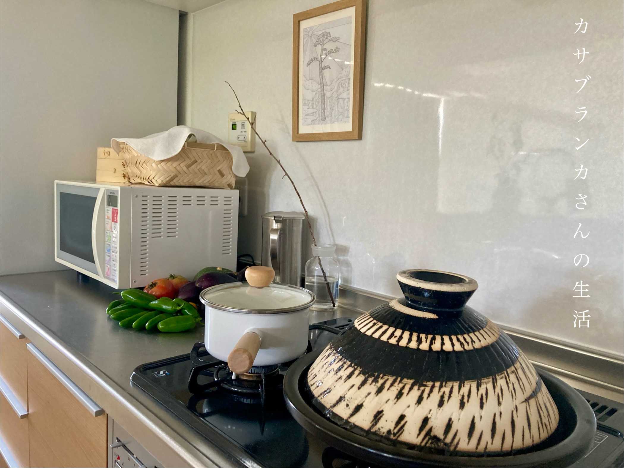 カサブランカさんの生活 『キッチン は 額縁 で 華やかに 、 本当 に 好きなもの』 ーーーーーーーーーーーーーーーーーーーーーーーーーーーーーーーーーーーーーーーーーーーーー この度は、ご観覧いただき誠にありがとうございます。 こちらのブログでは、生活に関する「アイテム」や「暮らし」について、載せて参ります。ご一読いただけたら幸いです。 何卒よろしくお願い申し上げます。 ーーーーーーーーーーーーーーーーーーーーーーーーーーーーーーーーーーーーーーーーーーーーー今回は、キッチンをご紹介して参ります。もし、お付き合いいただけたら嬉しいです。キッチンは「明るく清潔に」使えるように、自分のできる範囲内ですが、物は基本的に戸棚に収納して掃除のしやすさも考え使用しています。キッチンに絵を飾っているのですが、絵ひとつで雰囲気が大きく変わり華やかになるような気がします。キッチンに絵を飾る、私は好きです♪コンロ上の右側に置いてある黒色の土鍋は、フライパンとしてほぼ毎日使用しています。長谷園(ながたにえん)さんで購入しました。この土鍋の好きなところは、蒸し料理も炒め料理もどちらもできるところです。炒める代わりに蒸して炒め物風にしています。油をあまり使わないので健康的です。推薦された使い方ではありませんが、2人前程度の麺であれば少ないお湯で茹でることもできます。添付写真からお分かりいただけますが、フライパンのように浅い作りでも、一切吹きこぼれません。重さはありますが、半年、1年と使い続けると習慣化され、重さに抵抗がなくなります。また、鉄やホーローは熱せられているときに少し触れるだけで、とても熱い(熱伝導率が良いので)ですが、土鍋は厚みがあるので、ある程度の熱さであれば、鍋に手が触れても鉄やホーローのような熱さを感じません。厚みがあるので、熱が伝わるまでに少し時間がかかるかしれませんが、それでも素晴らしい料理道具だと思っています。好きなものを使うと、楽しさも増し明るい気持ちで過ごせて料理もはかどるので、また明日から少しでも美味しい料理を作れるよう頑張りたいと思います。今回は以上のご紹介です。最後までお読みくださり、ありがとうございました。