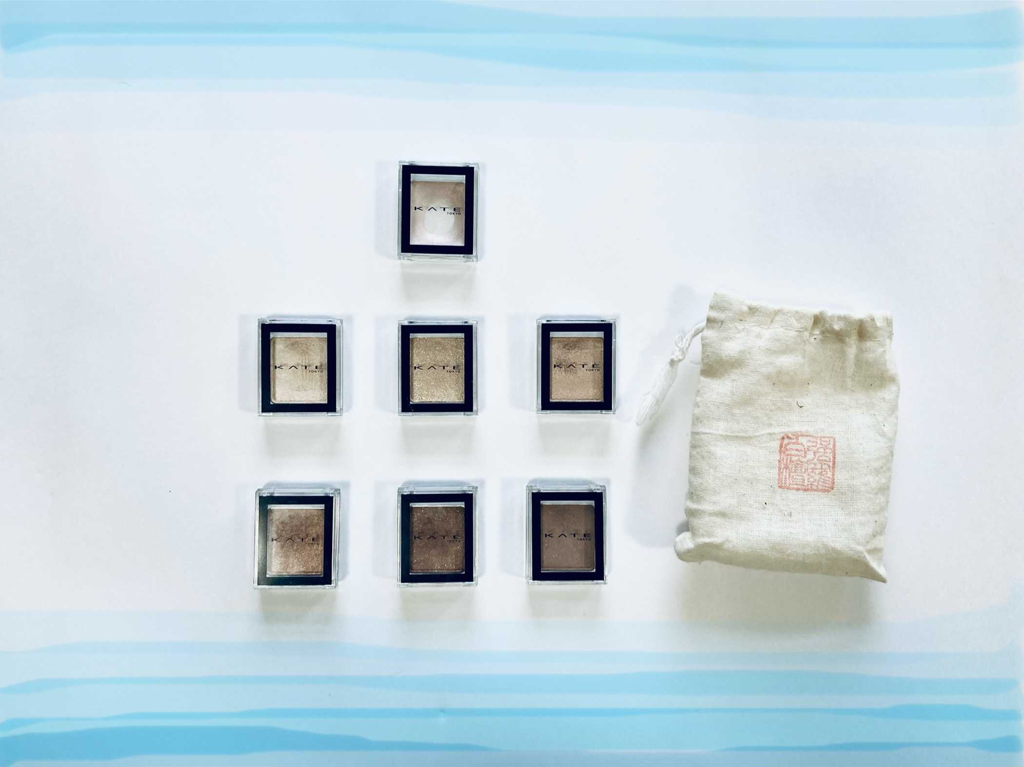 ハイライト、コンシーラー、カーキブラウンのアイシャドウを、カードケースに入れてまとめています。