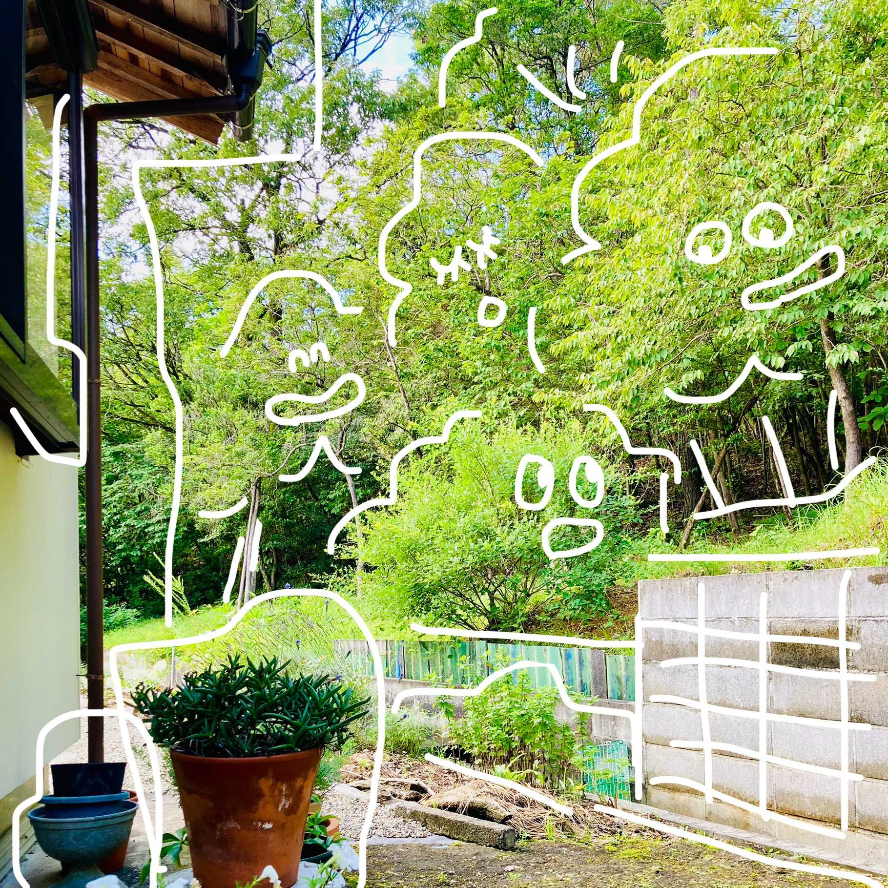 【木々のそよ風が心地よい裏庭】