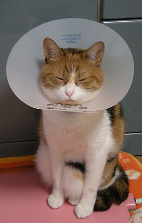 眉間を引っ掻いてしまった愛猫アイリスに、傷を早く治すため、またまたまたまたエリザベスカラーを装着しました。やっぱり、治りかけてくるとむずがゆくなるのでしょう、どうしても引っ掻いて悪化させてしまいがちです。アイは、エリザベスカラーを見ただけで逃げようとしましたが、あえなく装着となりました。ブログランキング