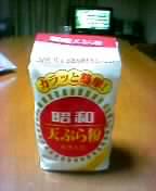 私はたまに天ぷらを作る。だいたいどんな料理もソツなく作れるが(たいした物ではない…)、天ぷらは本当に加減が難しい、なかなか進歩しない料理である。氷水を用意して、粉に注意深く加える。あまり混ぜ過ぎないように。衣が水分で薄まらないように気にしながら鍋の中も気にして…。けっこう忙しい料理ともいえる。フライ物の方がずっと簡単である。そんな私が前々から気になっていた代物。ダンナは「いつもので充分だよ」と言うが、私は買ってみたかった。100円ショップで発見したのでついに購入しちゃいました!向上心の表れか、はたまた、手抜きしてみたい気持ちの表れか。ま、この額ならたいしたことなくてもそんなにもったいなくない。大きな期待はしてなかったが、これがかなり使える便利な粉でした。しっかり混ぜちゃっていいし、水で薄まることを気にしなくていいし。そして、揚がりが非常に良い!もしかして、みなさんは普通に使っているものですか?(遅)こんなに便利ならもっと早くから使ってみればよかった。ダンナの「いつもので充分」って言葉なんか無視すればよかった。つまみ食いしたらサクサクでとてもおいしかった(ぇ)。調子こいて揚げすぎました。何人前でしょうか、コレ。しかも、画像が汚くて、盛り付けも悪くて、かなーり不味そうです。レンコンとピーマン、ナスを揚げました。皿に載り切らず画像にはありませんが、海苔と豚肉も揚げました。塩・コショウを効かせて豚のちょっと厚めの薄切り(何それ)も天ぷらにしてしまうとこれがなかなかおいしいんです。ハマります。さすがに食べ切れませんでした。あははは~…。