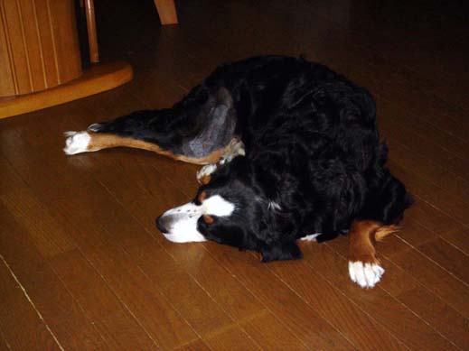 最近のベッキーはいつもいつもこたつで熟睡・・・。とろりとした目つきで寝ぼけてます^_^;ダックス4匹もこたつで熟睡・・・。6人座れる我が家のこたつの中は犬で一杯で人間様は入れません^_^;元気良く外にいるのはネコのチャコ・・・。犬は庭を駆けずり回り、ネコがこたつで丸くなるのでは???童謡は嘘なのかぁぁ~~~!!!バーニーズマウンテンドックはスイスのアルプスの犬ではないのかぁぁ~~!!