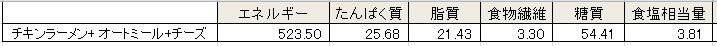 栄養素を見ると脂質が多いですね。そもそもチキンラーメンの脂質が多いので。