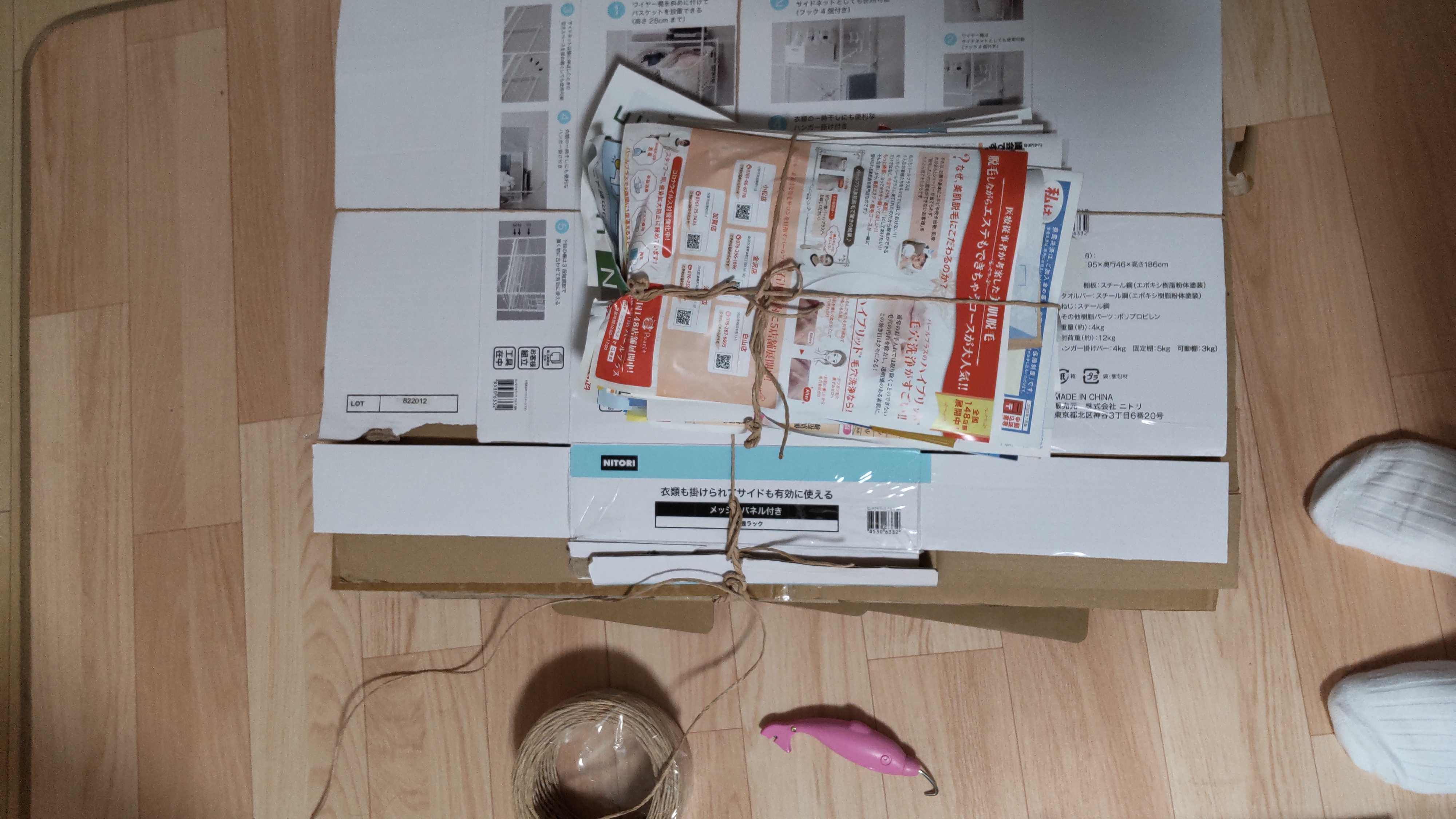 PPバンドもまとめやすいけど、場所をとるのがネック。他の家具の固定とかはPPバンドがいいかもです。