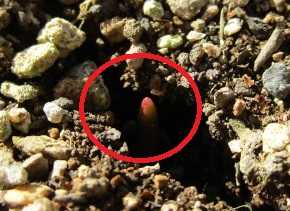 昨年の1月3日よりはだいぶ遅れたが昨年は土が雨で流出したため土の薄くなった部分で発芽したようである。