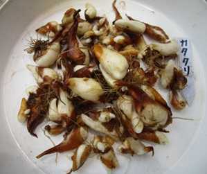 (掘り上げた球根。数は増えてはいるが大きな球根が少なくなってるようだ。)