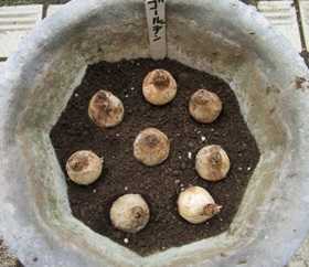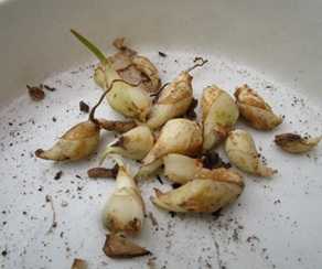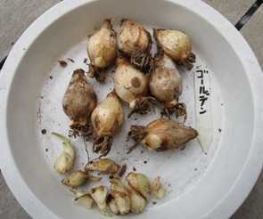 (ゴールデンフレグランスの球根。6月に掘り上げたものである。)