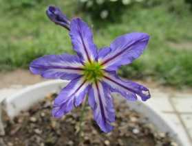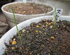 9月に球根を植えたリューココリーネ・ストライプブルーが発芽した。