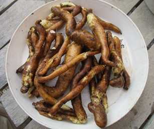 (掘り上げた球根。可もなく不可もなくという感じである。)
