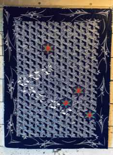 パッチワー作品作品は、ハワイアンキルト展などで何回か見たことはありますが、今回のはオリジナルのデザインばかりでした。シクシクコツコツ、どれ位の時間を掛けたのしょうか? 根気仕事は私も好きですが、編物よりもっと手がかかっている大作ばかりで感心するばかり。