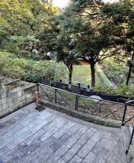 ギャラリーから出て階段を登りながら、ふと下を見ると、丘の中腹に弓道場があるのが見えました。元町公園は昔プールにしょっちゅう来ていたので、公園内は詳しいと思っていたのですが、矢場があるのは全然知りませんでした。木立の間からキチンと袴を着けた人が、静かに弓を引いているのが見えました。緑豊かな環境で弓を引いたら気持ちがいいでしょうね。