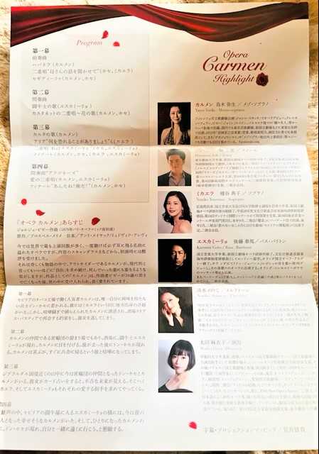 プログラムによると演目はカルメン。キャストされた歌手は知らない人ばかり。どうも、三井不動産が応援しているクラシックの歌手のためのオペラを上演するみたい。
