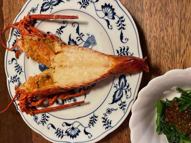 鳥羽国際ホテルのコックさんが作った伊勢エビのワイン蒸しです。残念ながら、コルレオネファミリーは帰ってしまっていました。でも、もし彼らがいたら、私の口には入らなかったかもね。ぺろり
