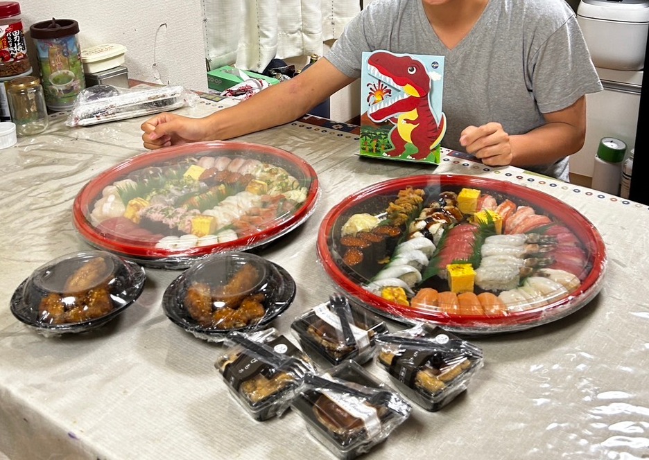 夏生まれのコルレオネ兄の誕生日が近づいても、プレゼントはなかなか決まりません。コロナ禍の前は、毎年、どこかに集まってお祝いしたのですがねえ~ みんな集まれなくなっちゃって、ホントにコロナが恨めしい今年はコロナ禍も一段落したらしいけれど、今度はオッサンジジが病を得て、外食はちょっと無理になってしまった。5月にはスイスの家族が来たときは、昔みたいに丘の上の我が家に全員集合できて、懐かしかったんだけど それで、色々考えた みんなが集まらなくても、出前を取る方法があったのだ!ネットで銀の皿へアクセスして、コルレオネ家の近くのお店からお寿司を送ることが出来ることに気がついたのであります!近頃では遙か離れていても、出前を注文して、支払いはこちらですることができるのです! 出前の注文はいつもオッサンジジがやっています。決断力の乏しい私では、なかなかメニューがきまらないから。オッサンジジがアッという間にこの寿司桶を2つ、って、一番高い桶じゃありませんか!一番お高い寿司桶2つと、サイドメニューに唐揚げ。ついでにデザートも4人前。締めて27000円ちょっとと相成りました もちろん支払いはカードでバアサンがパパッとやりました。普段はケチな私も久しぶりに大盤振る舞いすることに同意したのであります。なんてったって、外でみんなで食べれば、5万円ではきかないからね。でも、4人家族なのに、なぜか4人前桶2つ?? せっかくお寿司を送ったのに、足りなかったというのも、ケチくさいから、まあ、いいか!そして、誕生日にはコルレオネ家の近くの銀の皿から、無事にお寿司が届きました。8人前も4人でぺろりだったようです本当に便利な世の中になったものです。昔なら、「お寿司でも取って食べなさい」、とお金を送ったり、「あとで払って上げるから、お寿司でも取って食べなさい」とか言っておいて、払わなかったりしたのですがね・・・。クリスマスにはみんなで我が家に集まれるといいなあ~。それまでにオッサンジジの体力が戻ることを祈る毎日です